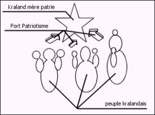 3/ ce dernier point est l'idée voulue par les fondateurs de la Kraboche en 1935, la clef de voûte de leur idéologie, ce qui posera plus tard les bases du socialo graffitisme: le peuple, redevant à kraland pour la montée des salaires, et donc de leur niveau de vie, revendique son appartenance patriotique, et déclare haut et fort être prêt à aider la nation. La fierté kralandaise aidant, généralement, les déclarations patriotiques provoquées par l'excès de vodka dans les pubs (les salaires ont augmenté, rappelez vous), sont en général tenues sous peine de discrédit sans pareil. La boucle est bouclée, et ainsi sont jetées les bases du futur régime politique kra.